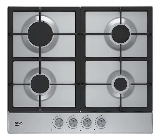 Beko Stainless Steel Gas Hob with Cast Iron pan support and with Wok Burner